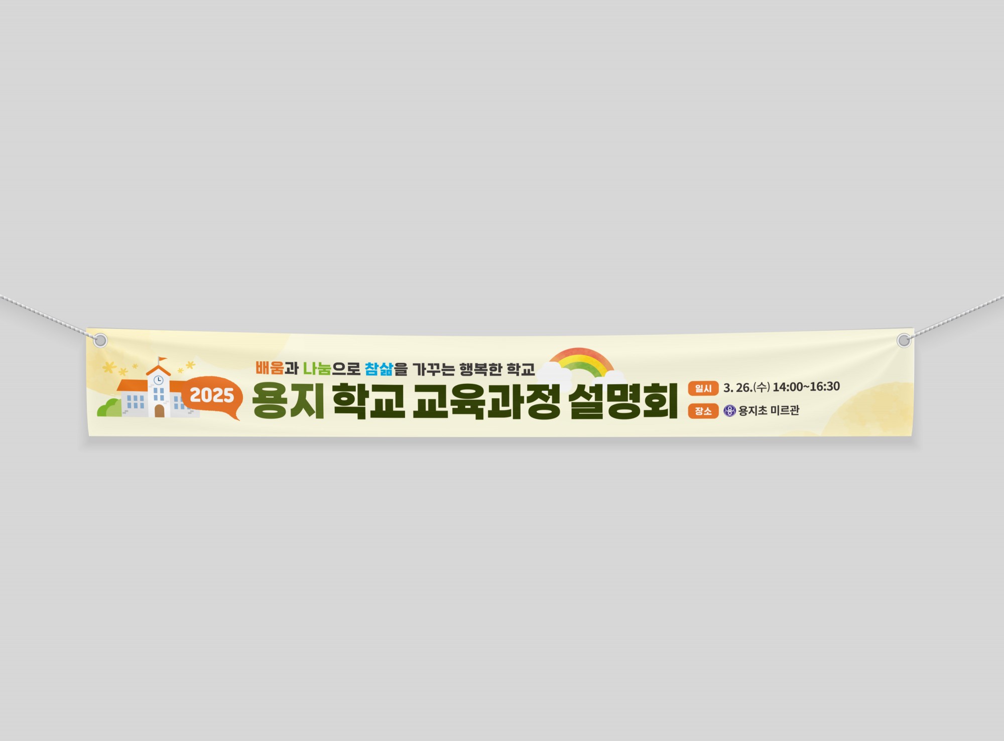 현수막 [용지초등학교] '교육과정설명회' 현수막 페이지 정보 작성자 관리자 댓글 0건 조회 9회 작성일 26-01-02 13:49 목록 본문 이전글[김해보건소] '대장암검진안내' 포스터 26.01.02 다음글[충북장애인종합복지관] 'AAC' 디자인 및 표찰 제작 26.01.02 댓글 0 댓글목록 등록된 댓글이 없습니다.