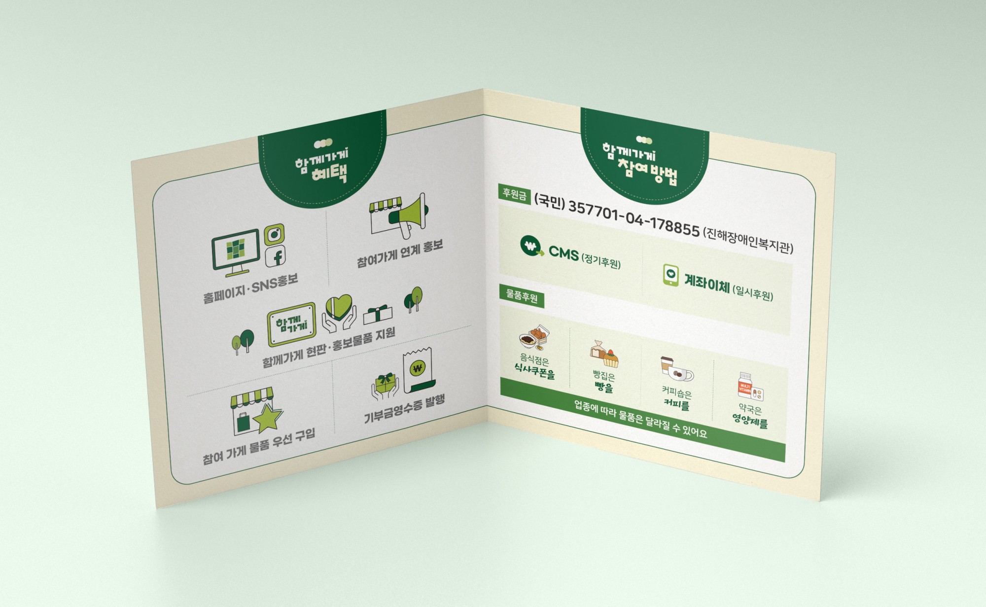 리플렛 [진해장애인복지관] '함께가게' 리플렛 페이지 정보 작성자 관리자 댓글 0건 조회 23회 작성일 26-01-02 14:26 목록 본문 이전글[경남광역여성새로일하기센터] '경력단절예방' 리플렛 26.01.02 다음글[창원산업진흥원] '온실가스 예산제 방안연구' 책자 26.01.02 댓글 0 댓글목록 등록된 댓글이 없습니다.